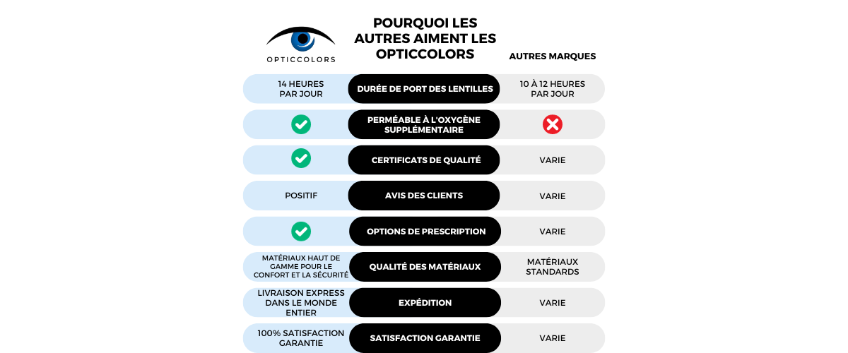 Oui. Toutes les lentilles Opticcolors sont certifiées CE et répondent aux normes internationales de qualité. La sécurité et le confort sont toujours nos priorités.